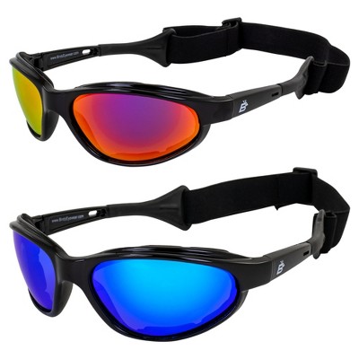 3 Pairs of Global Vision Eyewear Eliminator Safety Motorcycle Goggles with Flash Mirror, Blue Mirror, Red Mirror Lenses