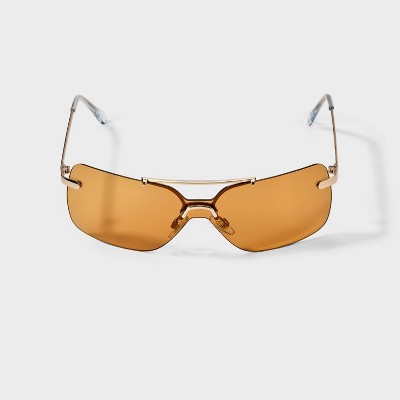 Rimless Metal Wrap Aviator Sunglasses - Wild Fable™ Gold Brown