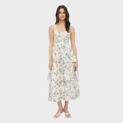 WEST K Womens Delina Smocked Back Tiered Midi Dress