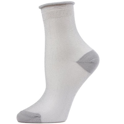 Memoi Women's Shimmer Roll Top Sheer Shortie Socks Silver 9-11