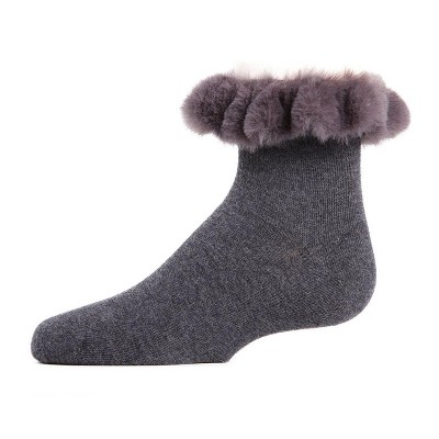 Memoi Faux-Fur Cuff Cotton Blend Anklet Socks Charcoal Heather 8