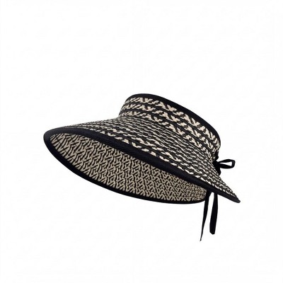 Anna-Kaci Women Straw Sun Visor Hat Wide Brim Contrast Trim Adjustable Bow Lightweight Summer Hat
