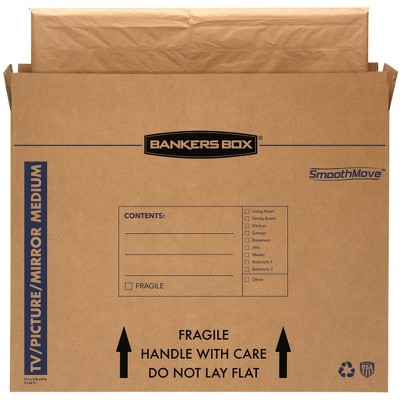 Fellowes Bankers Box 4pk Medium TV Picture Mirror Moving Box 37"x 4"x 27": Corrugated Paper, Brown, File Sorters & Holders