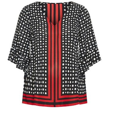 Alfred Dunner Womens Plus-Size Geometric Sharkbite Hem Top With Necklace, Black/White, Size 2X