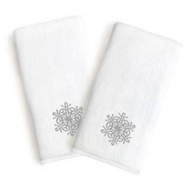 2pk Silver Snowflake Holiday Hand Towel Set White - Linum Home Textiles