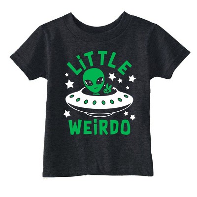 Toddler Funny T Shirts Little Weirdo Sarcastic Alien UFO Graphic Novelty Tee For Young Kids - Crazy Dog Toddler T Shirt For Astronauts