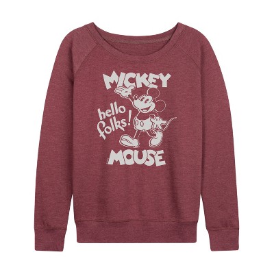 Women's - Disney - Mickey Mouse Lightweight French Terry Wide Neck Long Sleeve Graphic Shirt