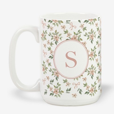 Personalization Mall Blush & Bloom15oz Ceramic Mug, Pink Bows