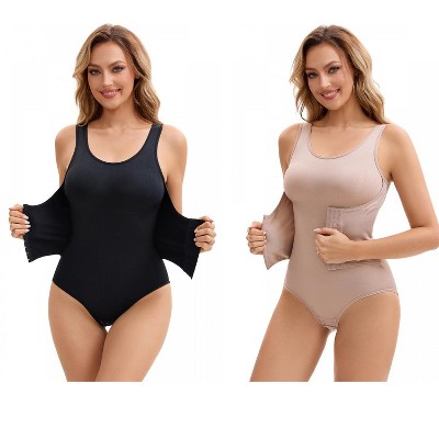 INSPIRE CHIC 2 Pcs Women's U Neck Full Scoop Neck Bodysuit Hollow Back Butt Lifter Body Shapers
