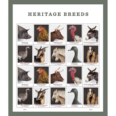 USPS Heritage Breeds 5 Sheet of 20 Forever Postage Stamps, First Class Letter Anniversary, Wedding, Celebration (100 Stamps)