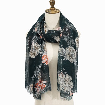 Wrapables Silk Like Satin Polyester Large Scarf Wrap, Almond Blossoms Teal