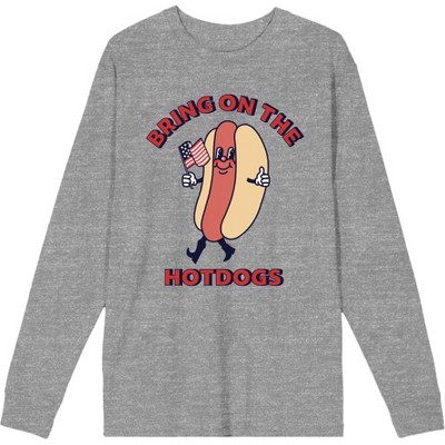 Americana Bring On The Hotdogs Crew Neck Long Sleeve Heather Gray Adult Tee