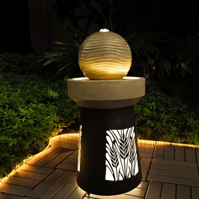 Outdoor Water Fountain with Lights 4 Tier Cascading Pot Waterfall Resin Garden Fountain for Patio Yard Porch Landscape
