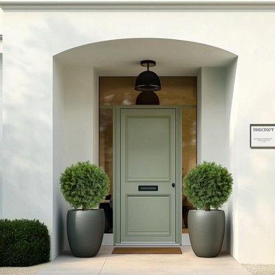 Artificial Topiary Cedar Ball Tree 2pcs,17 in UV Resistant Fake Potted Plants In Black Nursery Pot,Artificial Trees for Porch Home Decor Housewarming