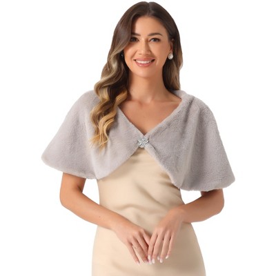 INSPIRE CHIC Women's Faux Fur Wedding Cape with Pearl Rhinestone Brooches Shawl