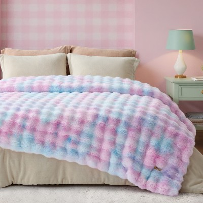 Brooklyn Loom Twin/Twin XL Bubble Faux Fur Blanket Ivory