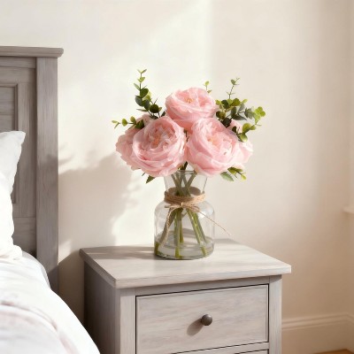 Fake Flowers in Vase,Artificial Pink Roses in Vase,Faux Flowers Arrangement with Artificial Water, for Dining Table Centerpiece,Home&Restaurant Decor