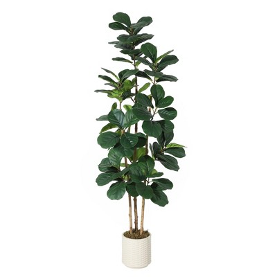 5FT Artificial Fiddle Leaf Fig Tree with Natural Trunk, Lifelike Faux Indoor Plant with Silk Leaves, Pre-Potted Fake Tree for Home & Office Decor