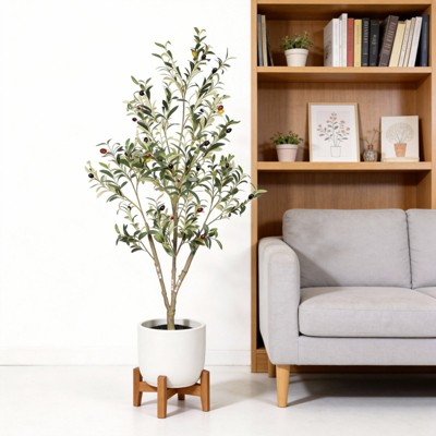 NAYSAYE Faux Olive Tree 5ft - Artificial Olive Trees Indoor with Natural Wood Trunk and Realistic Leaves Fake Olive Tree for Home House Office Décor