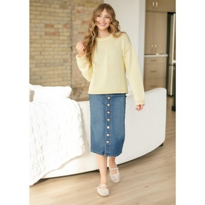 - mid length denim skirt