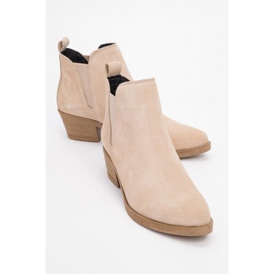 Dovena - Beige Suede Leather Block Heel Ankle Boot (Women) | Forever & Always Shoes