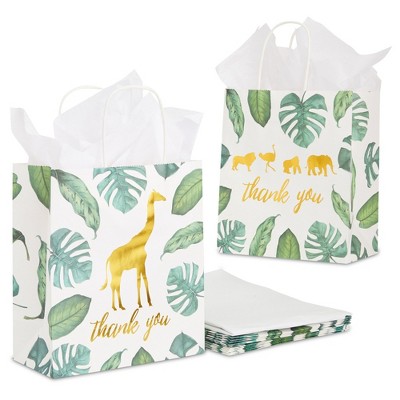 Juvale 12 Pack Safari Party Thank You Bags with Tissue Paper, Wild One Birthday Decorations for Girls and Boys, 8 x 9 x 4 in