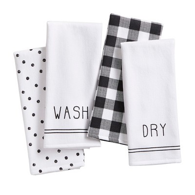 Farmhouse Living Sentiments Kitchen Towels, Set of 4 - 18" x 28" - Black/White - Elrene Home Fashions