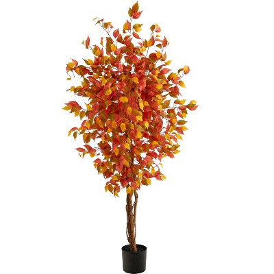 Nearly Natural 6-ft Autumn Oyama Magnolia Artificial Fall Tree