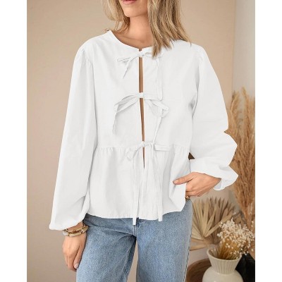 Women's Plus Size Tie Front Cardigan Sweaters Long Sleeve Bow Sweater Fall Winter Outerwear Tops
