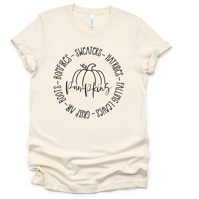 Women's - Instant Message - Fall Bucket List Leaves, Pumpkins, Hot Cider Short Sleeve Graphic T-Shirt