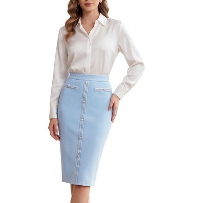 INSPIRE CHIC Women's High Waist Business Work Tweed Trim Button Decor Bodycon Skirts