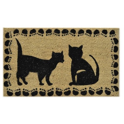 HomeRoots 18" X 30" Beige and Black Coir Cat Outdoor Door Mat
