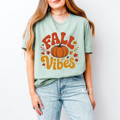 Simply Sage Market Fall Vibes Pumpkin And Leaves Short Sleeve Tee