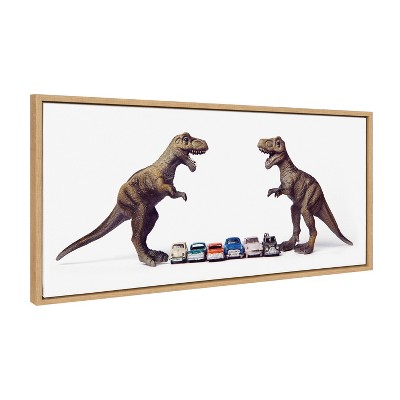 Kate and Laurel Sylvie Dino Cars Faceoff Framed Canvas by Saint and Sailor Studios, 18x40 Sylvie Natural