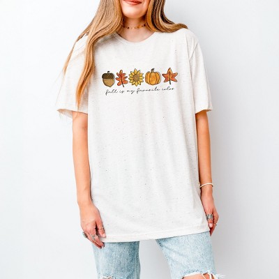 Simply Sage Market Women's Fall Breeze Crunch Leaves Colorful Short Sleeve Garment Dyed Tee