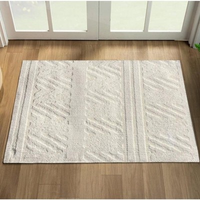 Home Mart Goods 2x3 Light Cream Abstract Soft Pile Boho Minimal Door Mat Rug
