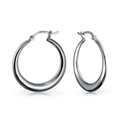 Bling Jewelry Simple Plain Circle Crescent Tapered Tube Hollow Puff Tube Round Hoop Earrings .925 Sterling Silver Hinged Notched Post