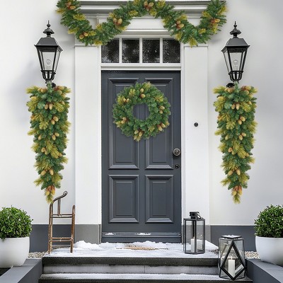 24" Pre-Lit Artificial Christmas Wreath with 50 Warm White LED Lights,Frosted Pine Cone & Berry