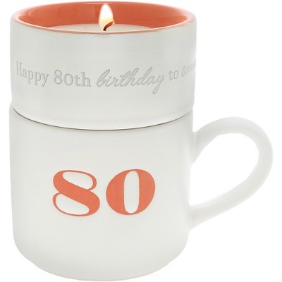 Pavilion Gift Company - 80th Birthday - Wax Reveal Hidden Message Jasmine Scented Candle & 11 Oz Mug Present