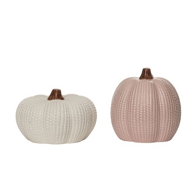 Transpac Set of 3 Multicolor Resin Pumpkin Sculptures in Kraft Box Decorative Tabletop Fall and Halloween Decor