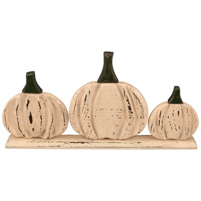 Northlight Rustic Wooden Fall Harvest Pumpkin with Leaves and Stem - 15"