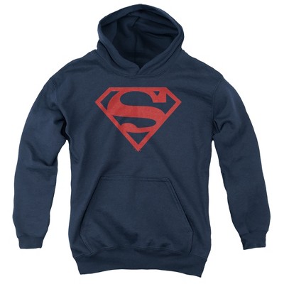 Boys’ Superman Red On Black Shield Hooded Sweatshirt