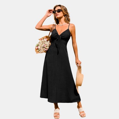 Cupshe Women's Elegant Tie-Front Denim Maxi Dress