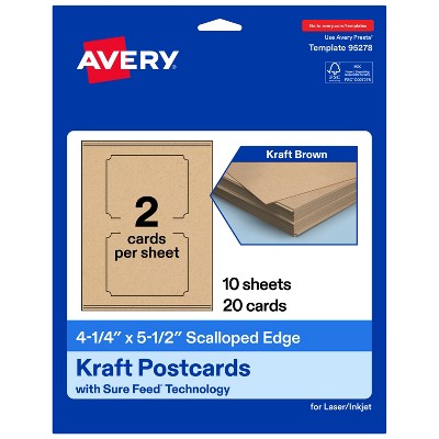 Avery 4-1/4" x 5-1/2" Rectangle Scalloped, Kraft Brown Postcards