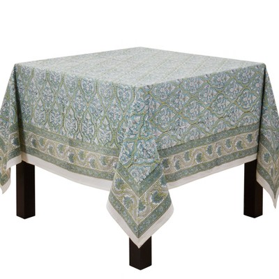 Saro Lifestyle Ornate Floral Border Cotton Tablecloth with Traditional Motif & Decorative Edge Detail, 70"x70", Blue