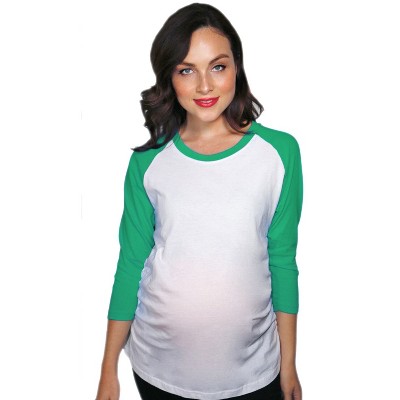 Maternity Raglan Shirt Comfortable 3/4 Long Sleeve Ruched Pregnancy Baseball Top - Crazy Dog Maternity Raglan with Fun Design