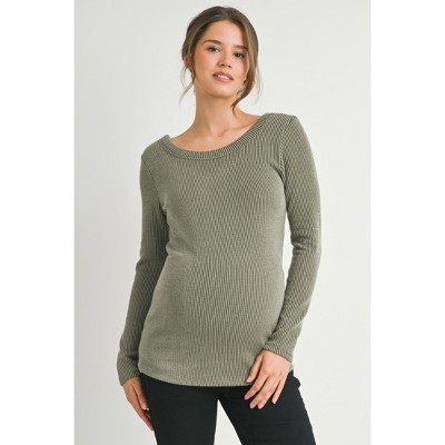 Hello Miz Women's Scoop Neck Long Sleeve Ribbed Maternity Top