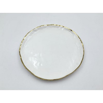 Jiallo 8.5" Simplicity Collection White Porcelain Gold Trim Freestyle Round Dessert Plate