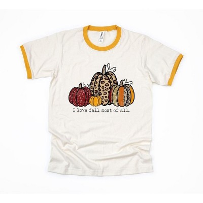 Simply Sage Market Women's I Love Fall Most Of All Pumpkins Short Sleeve Ringer Tee