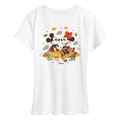 Women's - Disney - Mickey and Minnie Mouse Fall Leaves Short Sleeve Graphic T-Shirt